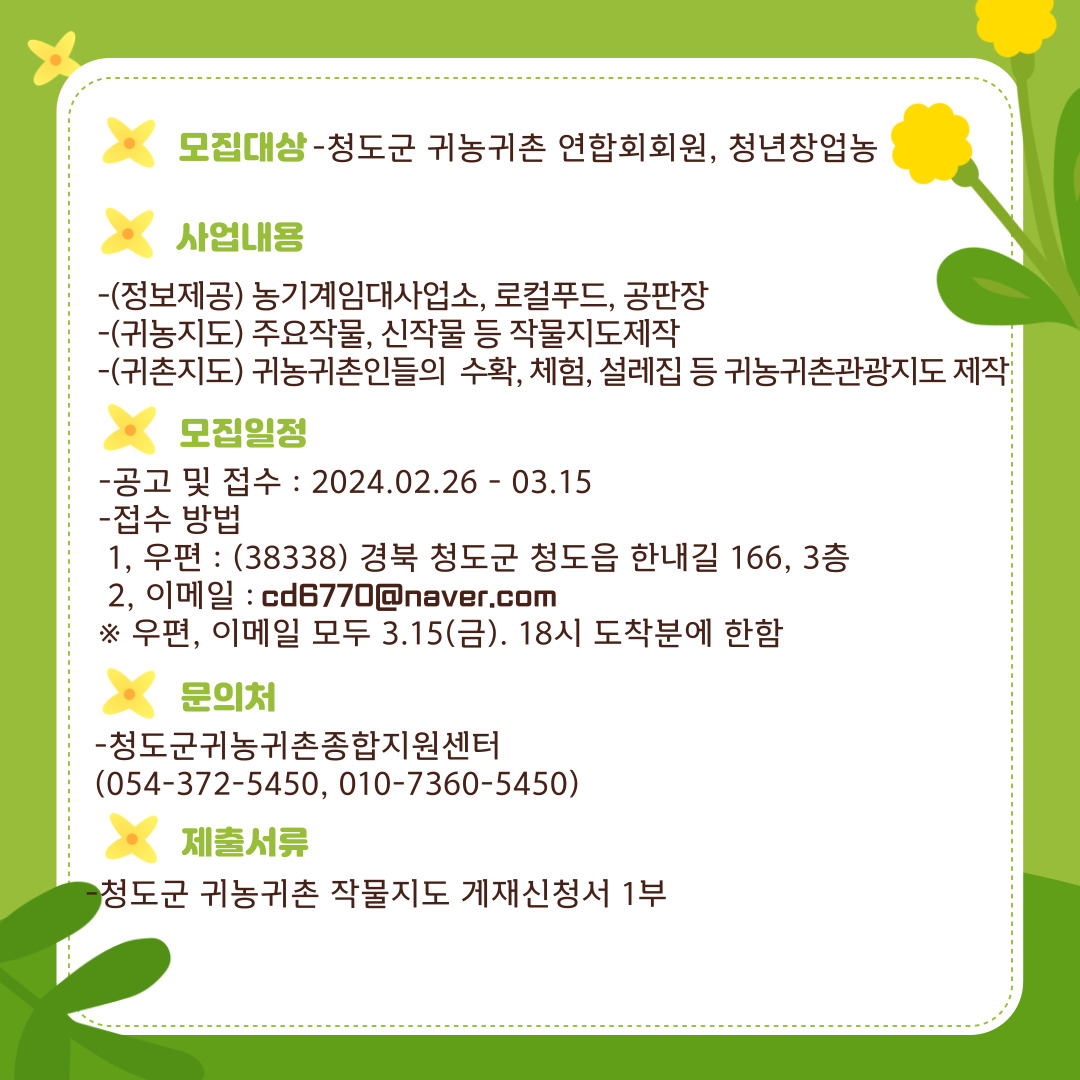 청도군귀농귀촌종합지원센터가 마련한 10가지 지원사업