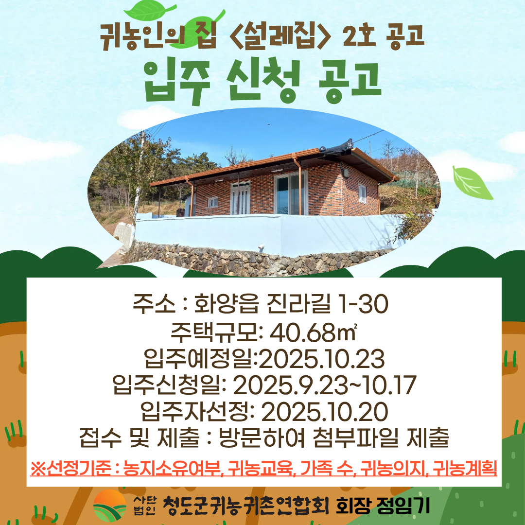 청도군 귀농인의 집 2호 입주 신청을 받고 있습니다.